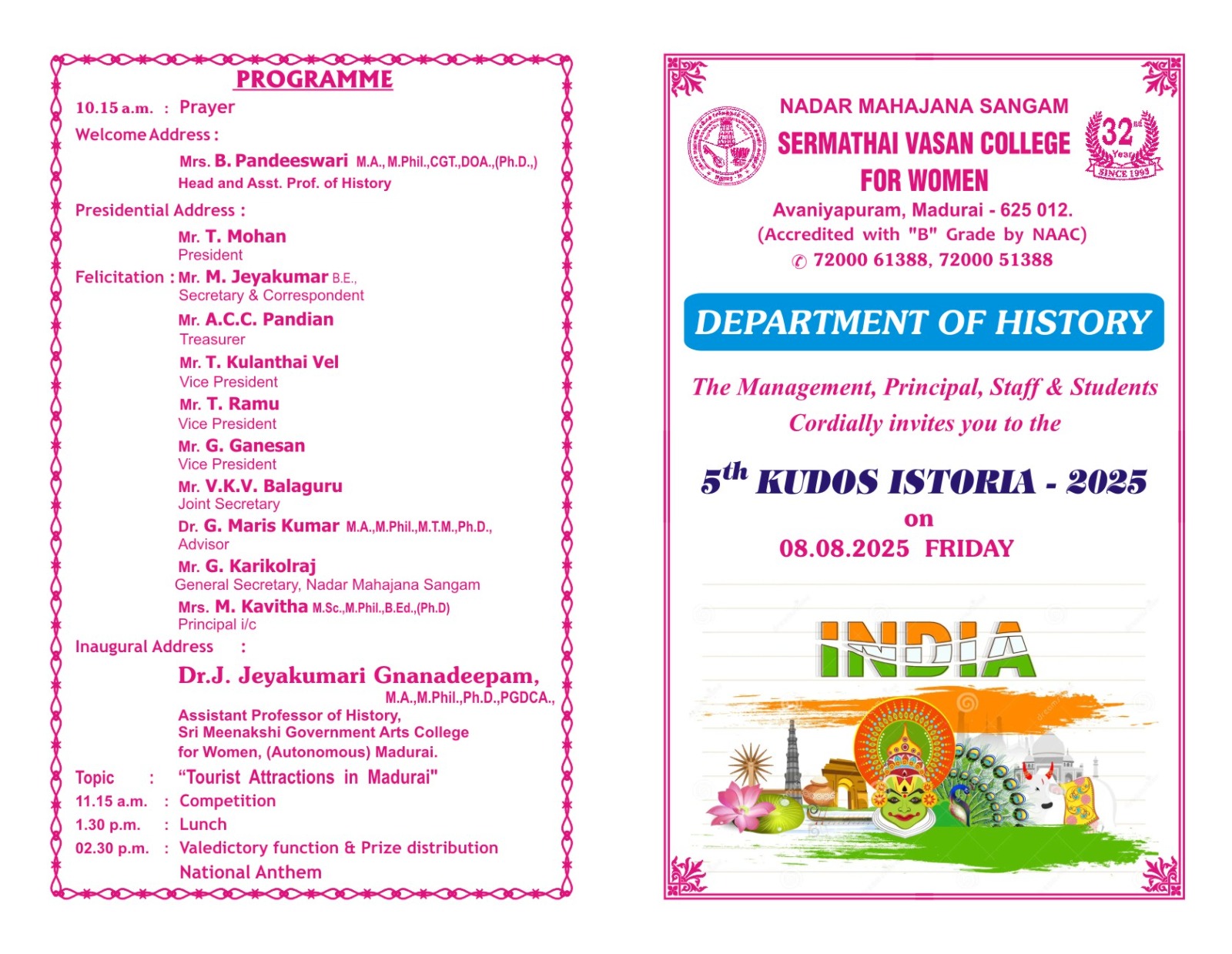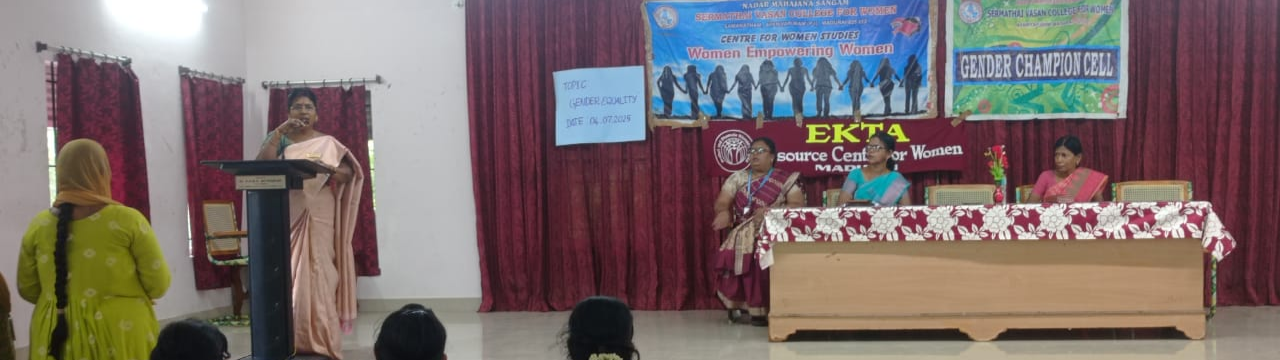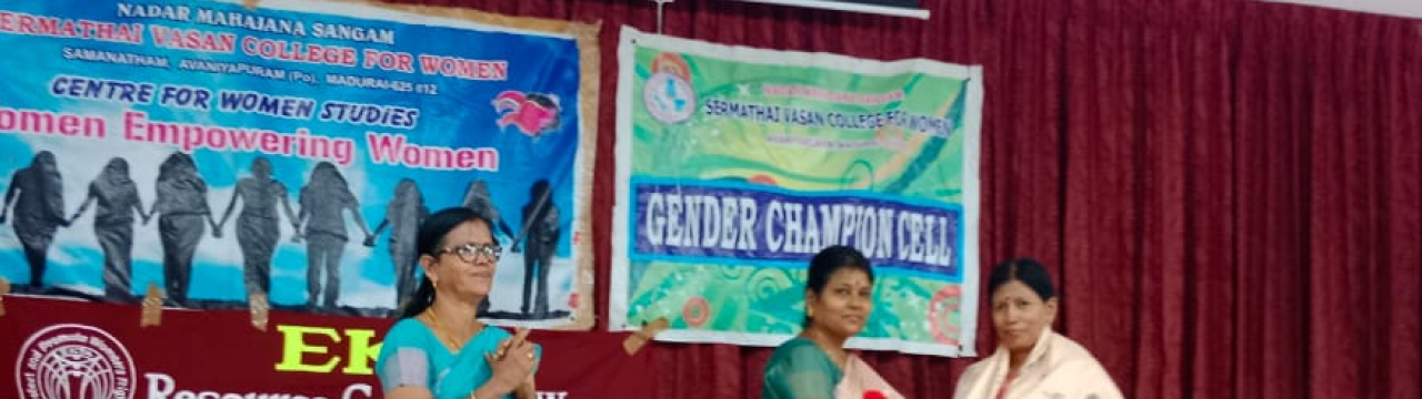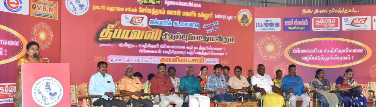 The golden pages of history witnessed an educational revolution in the year 1993 with the inception of NMS Sermathai Vasan College for women, by Nadar Mahajana Sangam with a mission to uplift the educational status of women in and around madurai. The college was named after the benevolent philanthropist Thiru. V.G.Vasan, and Thirumathi Sermathai Vasan, who believed the empowerment of women is through knowledge and economic independence. The hand that rocks the cradle can rock the world is the vision of V.P.R. Gangaram Durairaj, the founder of the college.