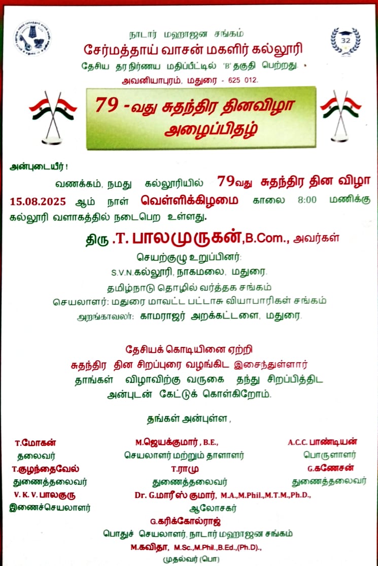 79வது சுதந்திர தின விழா அழைப்பிதழ் on 15.08.2025